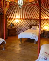 Family Yurt: with one double bed and a sofa bed for a third person.